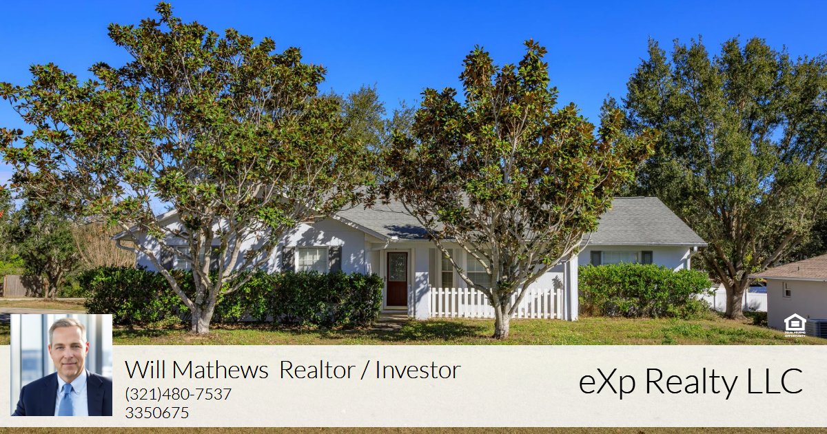 Price Adjustment! Don’t miss this opportunity to own a Clermont home with loads of upside potential. This house is just waiting for you to add your own unique design touches (or not). Situated on a spacious corner lot, this home has a country feel you don’t get from more modern subdivisions in the area. On the outside you’ll notice a tree speckled lot offering ample room for a pool out back if you wanted to install one in the future. From the front porch you can catch a glimpse of one of the area lakes as you sip your coffee or scroll your phone :). Though not absolutely necessary, the inside is in need of some updates and that is reflected the low price. With a smart layout including high ceilings, the interior has a spacious feel as well. The split floor plan features a primary bedroom, bathroom and walk in closet on one end of the home and two bedrooms and one bathroom on the other end with family gathering space win the middle. A truly traditional design. The screened back porch has been modified to include sliding windows to create a sunroom where the climate can be better controlled year around. The home received a new roof in 2015 and the AC air handler was replaced in 2019. So many possibilities at an amazing price, schedule your showing today.