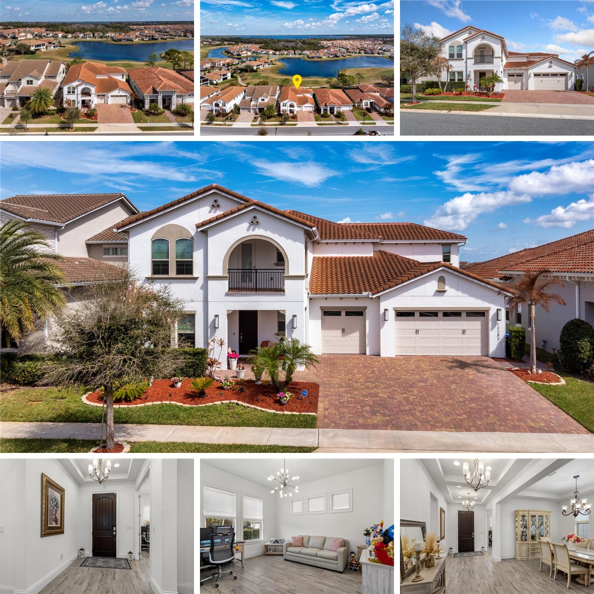 When only the BEST will do. Welcome to this stunning luxury home in the guard- gated golf community of Eagle Creek, located in the prestigious Lake Nona area of Orlando. Situated on one of the best lots with both golf and water views, this home has it all. Jones Homes' Fernwood II model offers spacious rooms, quality upgrades, high ceilings and lots of natural light. The open floor plan and seamless access to your outdoor paradise is a must see feature. The large triple sliders open to a 39'x10' covered patio with remote screens, beautiful pool and heated 12-person spa, summer kitchen and outdoor stone bar with beverage refrigerators.
