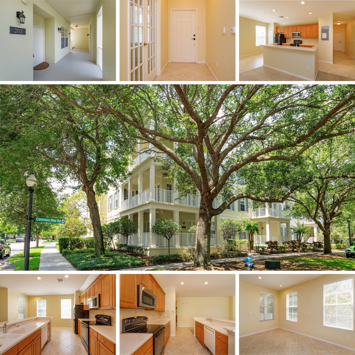 IMPROVED PRICE! Discover the easy lifestyle in this SECOND-FLOOR, CORNER END UNIT condo with a DETACHED GARAGE, and an ELEVATOR located just steps from your front door. The EXTERIOR has just been FRESHLY PAINTED. The inviting WRAPAROUND porch is perfect for relaxing and enjoying your morning coffee. What is amazing about this location and BALWIN PARK is its WALKABILITY. You'll love the convenience of being within a 5-10 min walk to Publix, shopping, dining, bars, and the picturesque Lake Baldwin. THe builder, Centerline, constructed this home with durable cement block from ground to roof. These condos have been SOLIDLY constructed with soundproofing between units and have LOW electric bills! The OPEN floor plan boasts an eat-in kitchen, 42" natural WOOD cabinets and solid surface counters that are in PERFECT condition. The family and dining rooms are bathed in NATURAL light as there is an abundance of windows and multiple floor to ceiling French doors. Additional highlights are an in-unit laundry area, with WASHER and DRYER, and an energy efficient HVAC installed 2016 that was MAINTAINED regularly. The spacious PRIMARY bedroom has a large walk-in closet and en-suite with DOUBLE VANITIES, linen closet and large WALK-IN shower. Baldwin Park amenities include three community pools, two fitness centers, parks/playgrounds, walking and biking trails, fishing piers, and clubhouses. Don’t miss out on this wonderful home! WELCOME HOME.