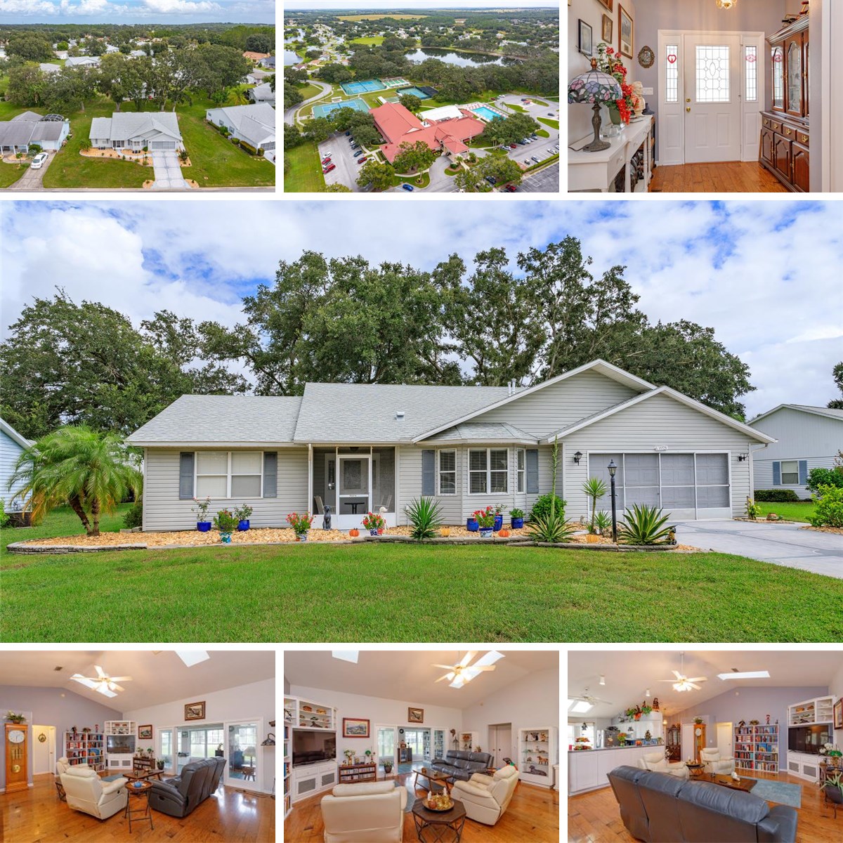 Extremely Well Maintained Lake Highlands 55+ Community 3 bedroom, 2 bath home - don't miss this one!!! Beautifully landscaped front yard leads you to the Screened Front Door Entryway and large Foyer with Coat Closet. This open floor plan has Great Room with Cathedral Ceiling, skylights and built-in Corner Cabinet and opens to well laid out Eat In Kitchen with room for a table and chairs by the Bay Window, Pantry, Double Oven and extra wood cabinets under the Breakfast Bar. Super upgraded distressed HICKORY Flooring throughout the home except for tile in baths and Florida Room. Florida Room has double pane, tinted windows with calming view of trees and open patio for grilling out. The Primary Bedroom has Ensuite Bath with Garden Tub and Large Shower plus Walk-In Closet. On the opposite side of home is 2 bedrooms with full wall closets and bath with Tub/Shower Combo. Don't miss the very convenient "home office" with the built-in Desk and Cabinetry - perfect private area to for computer and paperwork!! Roof replaced in 2022 and most appliances in kitchen recently replaced. Garage and Driveway have been professionally finished. This community is gated and has Clubhouse that includes Billiard area and a large list of clubs, activities and events. There is a Fitness Center, Indoor and Outdoor POOLS, 6 Tennis Courts, 4 Bocce Ball Court, 8 Shuffleboard Courts, 7 Horseshoe, a Softball field, 2 Nature Trails, Golf Driving Range, Craftsman/Woodworking Shop, Pickle Ball Court and Free Secured Boat and RV storage area. Call to set up Showing TODAY!!