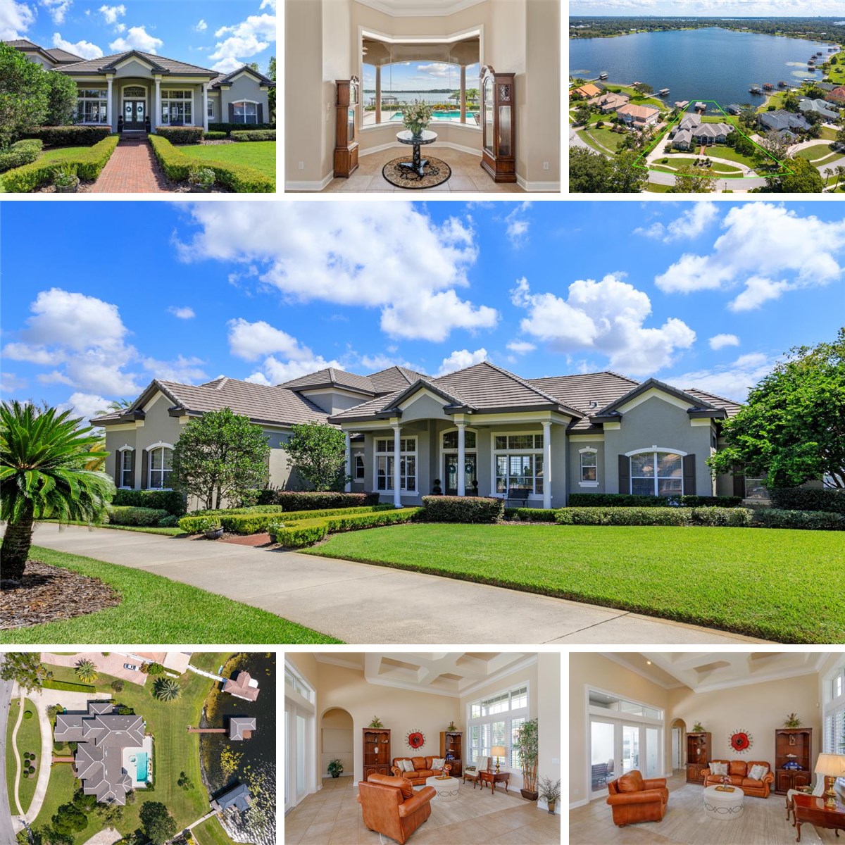 Captivating Sunrise views greet the Morning at this Elegant and Inviting Custom 2-story Windermere Waterfront Home on peaceful Lake Crescent. This exquisite 5 Bedroom, 4 1/2 Bath home is a must see for Watersport enthusiasts and offers extras throughout. Natural light streams through the beveled glass doors opening to the Living and Dining Rooms showcasing an expansive Bay Window highlighting a sprawling Lakefront and poolside view. Formal living areas display Italian Porcelain Tile, Custom Moldings, 14' Coffered Ceilings and Dry Bar with roomy Cabinets while light neutral colors accentuate the background. Spacious first floor Primary Suite overlooks the Pool and Lake showcasing dramatic morning Sunrises. Spacious Primary Bathroom offers dual sinks, two large walk-in closets, hydro-massage tub and walk-in shower. Adjacent ensuite Bedroom adapts easily to ever changing family needs. Open split floor plan presents a third ensuite guest Bedroom on the far side of the main level with a private terrace overlooking yet another serene view of the Lake. Expansive Kitchen with gorgeous Breakfast room is accented with granite counters, custom cabinetry, large prep island, oversized island counter, Sub Zero Refrigerator (2021) and Bosch cooktop (2022) with wi-fi enabled features, Double Ovens, and dual sinks. Light and airy Family room adjoins the Kitchen while overlooking the Pool and Waterfront, featuring window seating/storage and offering a Gas Fireplace for added ambiance. Upstairs features a New Custom Home Theatre with a 106-inch Screen, Leather Reclining Seating and a built-in sound system as the perfect room for watching your favorite Sports, playing Video Games or gathering for Family Movie night. Two additional Bedrooms with shared Bath and Separate Vanities are also upstairs along with a sizable Bonus Room with private access to a Newly Screened balcony overlooking the Lake and Pool. Outdoor living is best enjoyed on the spacious Lanai and in the backyard leading to the Private Dock with New Trex Decking (2023), Dual Jet Ski Lifts and extra Dock space for Dining. Added highlights include newly painted Exterior & Pool Deck (2022), overhead Storage in an oversized Three-Car side entrance Garage, abundant Closets throughout, Central Vacuum, and large Laundry Room featuring Wi-Fi enabled Refrigerator (2022) Washer (2020) and Dryer (2021). New Carrier Air Conditioners (2022,2018) with Wi-Fi capable programmable thermostats, two New Hot Water Heaters (2023) and W-Fi capable garage door opener. Lakefront Living is a pleasure from this home with a picture-perfect waterfront backdrop of 187-acre Lake Crescent where you can view Fireworks, Seaplane takeoffs & landings and Launches from Cape Canaveral from the comfort of your own resort style home. Zoned for top rated Public and Private Schools. Minutes from Shopping, Dining and Orlando Theme Parks.