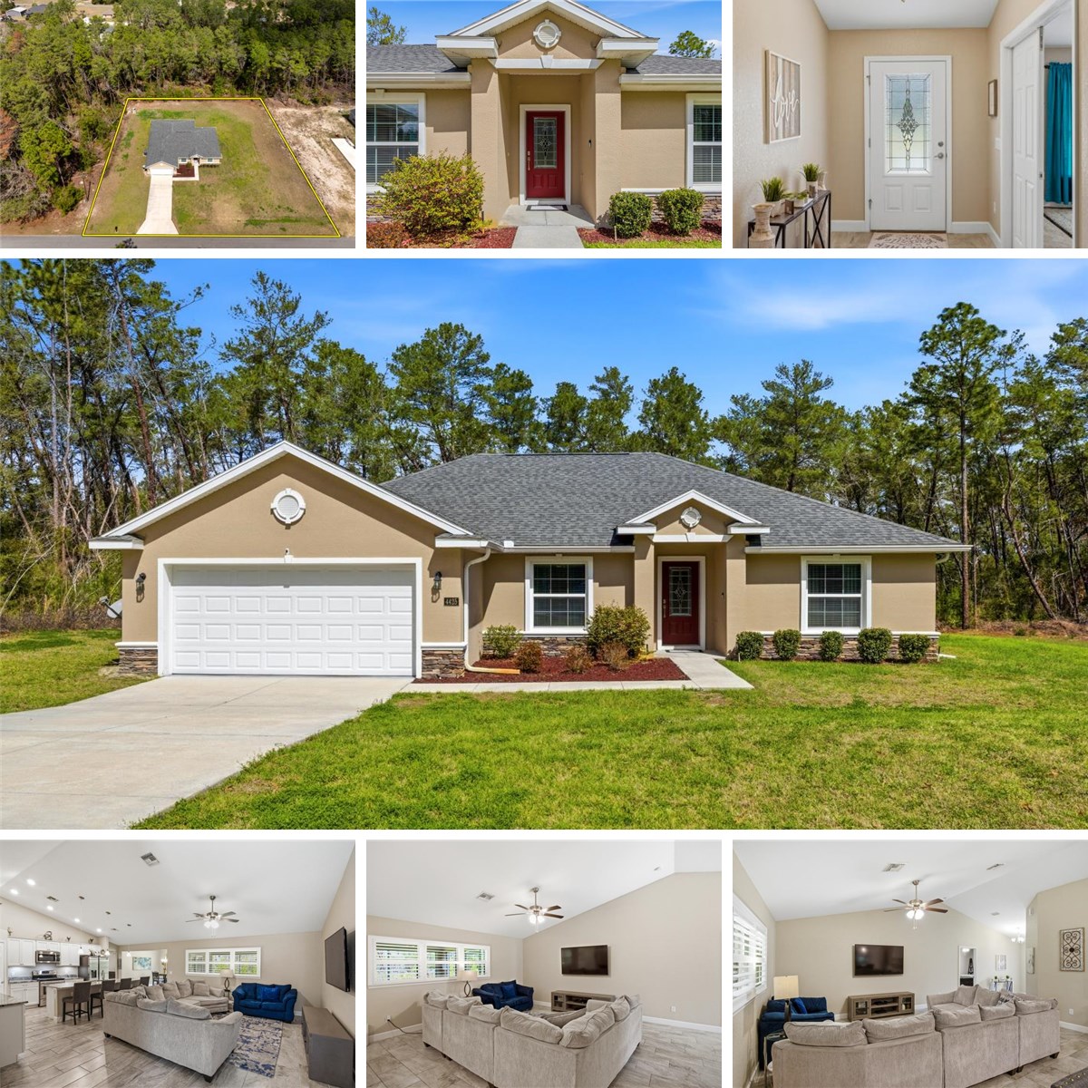 Welcome to this spacious and well-maintained 4-bedroom, 2-bath home located in the desirable Ocala Waterway Estates community. Built in 2020, this modern residence features an inviting open-concept floor plan designed for comfortable living and effortless entertaining. The gourmet kitchen is the heart of the home, showcasing granite countertops, ample cabinetry, and generous workspace, making it perfect for preparing meals while staying connected with family and guests. The split-bedroom layout provides added privacy, with a relaxing owner’s suite featuring a private bath. Situated on an oversized 0.62-acre lot, this property offers plenty of room for outdoor living, gardening, or future additions. Enjoy Florida’s beautiful weather from the back patio, an ideal space for relaxing or entertaining. Conveniently located and move-in ready, this home combines modern comfort, space, and privacy. Schedule your private showing today—this one is a must see!