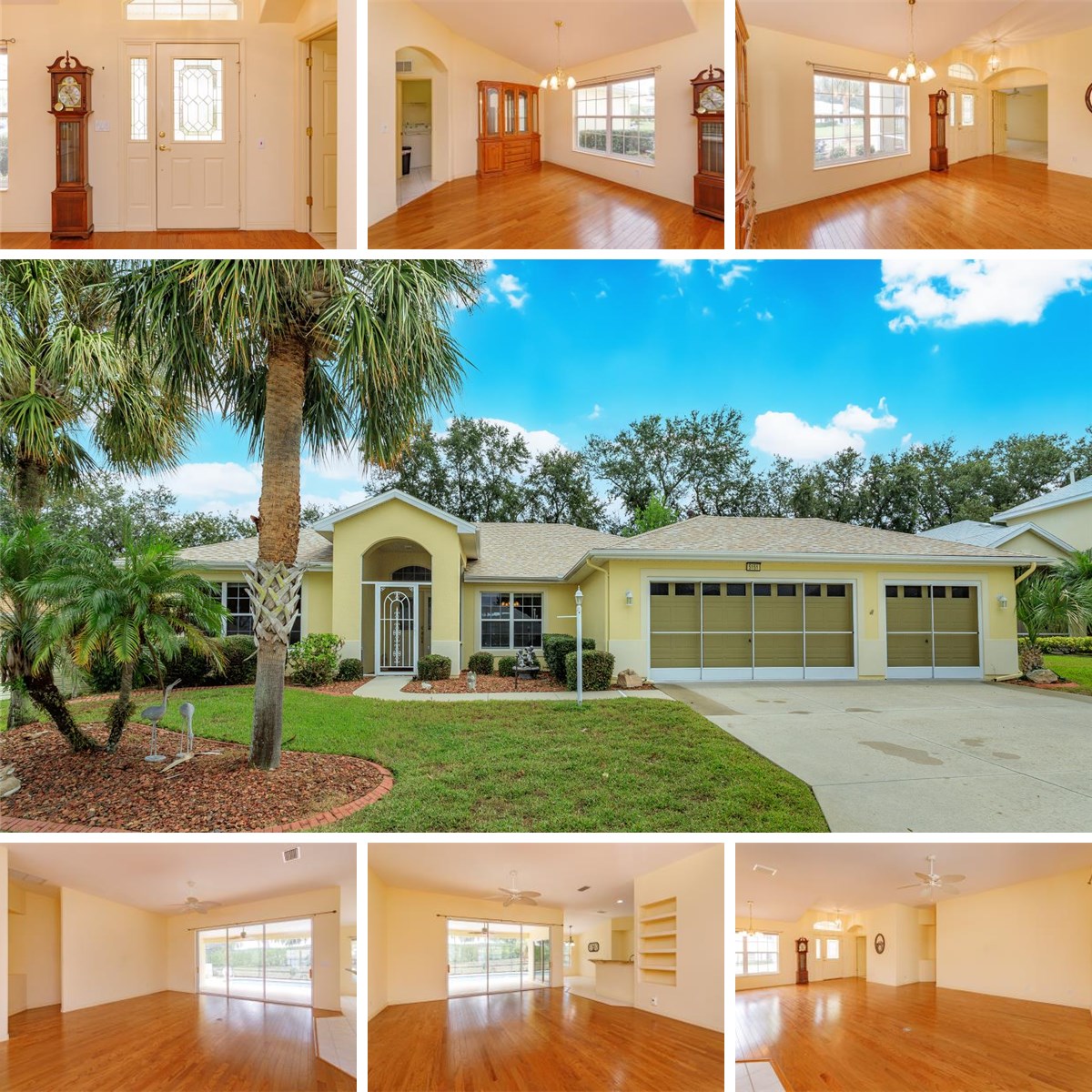 Welcome home to your dream 55+ community in beautiful Lake County! Royal Harbor offers dozens of amenities and there is a club for just about any interest! See the list of community offerings attached to this listing! This home offers four full bedrooms, Two baths, full three car garage, a screen enclosed pool with both covered and open deck Space. The front door is screen enclosed for added weather and bug protection. Upon entering this home you will see open living space with beautiful wood floors and high ceilings. The floorplan offers a three way split with the primary bedroom off to the left back of the home, the fourth bedroom off to the left front and bedrooms two and three on the far right side of the home. The kitchen offers 42" wood cabinets, granite countertops, new stainless steel appliances, a 10' breakfast bar, laundry room access and a 10x9 eating space with pool views. The Primary bedroom is 19x13 and offers a large walk in closet, dual sinks, linen closet, soaking tub, a separate shower and a frosted window for natural light. This home is ready for a new owner, call for your private showing today!