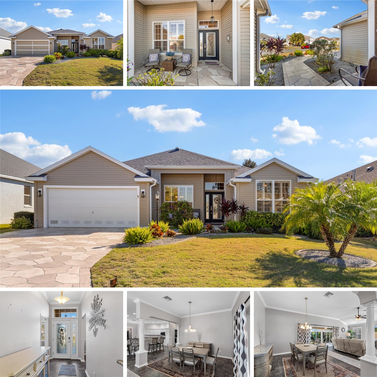 ABSOLUTELY GORGEOUS! This Beautifully, Well-Appointed Designer “Camellia” 3 Bed/2 Bath Split Plan home, in the Village of Amelia, with Thousands of $$$ of Discerning Upgrades, located Between the 6’s, Partially Furnished with Quality Designer Furnishings and TURNKEY. ROOF 2024, Solar Attic Fan 2024, HVAC 2019 (Trane w/Smart Thermostat), HWH 2023! Expect to be Impressed by the Perfectly Manicured Yard, Landscape Curbing, Lush Palms, Plants & Rocks which Compliment the Upgraded 2023 Designer Concrete Stone Patterned Drive & Walkway leading to the Full Light Leaded Glass Front Door w/Matching Sidelight w/upgraded KeyPad Entry & Ring Doorbell. Newer Gutters & Downspouts. The Garage also Boasts a Secondary Retractable Electric Privacy Screen 2024, all this before even entering this home! OPEN FLOOR PLAN, SPLIT BEDROOMS w/Pocket Door for Guest Privacy. NO CARPET & Luxury Waterproof Vinyl Tile Flooring in a “Brick Joint” pattern throughout, w/ upgraded 5” Baseboards and Elegant Plantation Shutters! Crown Molding in all Main Living areas. Vaulted Ceilings in all Rooms! 2 Solar Lights, 1 in Kitchen, 1 in Guest Bath. Kitchen has Timeless White Wood Cabinets, Pull-Outs, Newer Hardware/Sink/Faucet/Fixtures/Upgraded Dimmer Switches, an Eat-in Breakfast Nook, GRANITE Countertops & HIGH END Samsung Appliance Package in Black SS, including a Gas Double Oven Range w/Grill, French Door Fridge w/ Easy Access Door& Recessed Lighting! The Lanai is Open to the L/D rooms w/pocketed Sliding Glass Doors. The Lanai is 4 Season, has Porcelain Tile Floors, Glass & Screened Enclosure with Ceiling Mini Split 2020, Custom Floor to Ceiling Solar Shades 2022, 2 newer Ceiling Fans with Lights, New Sconces and Wood Toned Shiplap giving the room a Calming Elegant Touch w/ Lush Landscaping beyond! The Private Master opens to the Lanai, features Double His-N Hers Closets, Separate Large Linen Closet, GRANITE Countertops Double Sinks w/ Make-up Area, Lighting & Fixtures. Separate Commode & Remodeled Shower with Seat, Upgraded Shower Head/Decorative Tile/Corian/Frameless Glass Shower Door. The Guest Wing has Privacy w/ Pocket Door & Linen Closet. Bedroom 3 has a Custom BUILT-IN Queen Murphy Bed/Desk/Closet with Drawers for Additional. Storage. Guest Bath has Solar Light, GRANITE, Porcelain Tile Tub/Shower Surround, Newer Lighting/Fixtures. The Inside Laundry Room Continues w/Samsung W/D 2018, lots of White Cabinetry for extra storage & motion sensor lighting . This home is conveniently Located to Lake Sumter Landing, Mallory CC& Golf Course, & the Amelia Neighborhood Pool/Mailbox is right up the street! All TV’s included. Call TODAY and tour this GEM! (BOND BALANCE is $11,231.30)