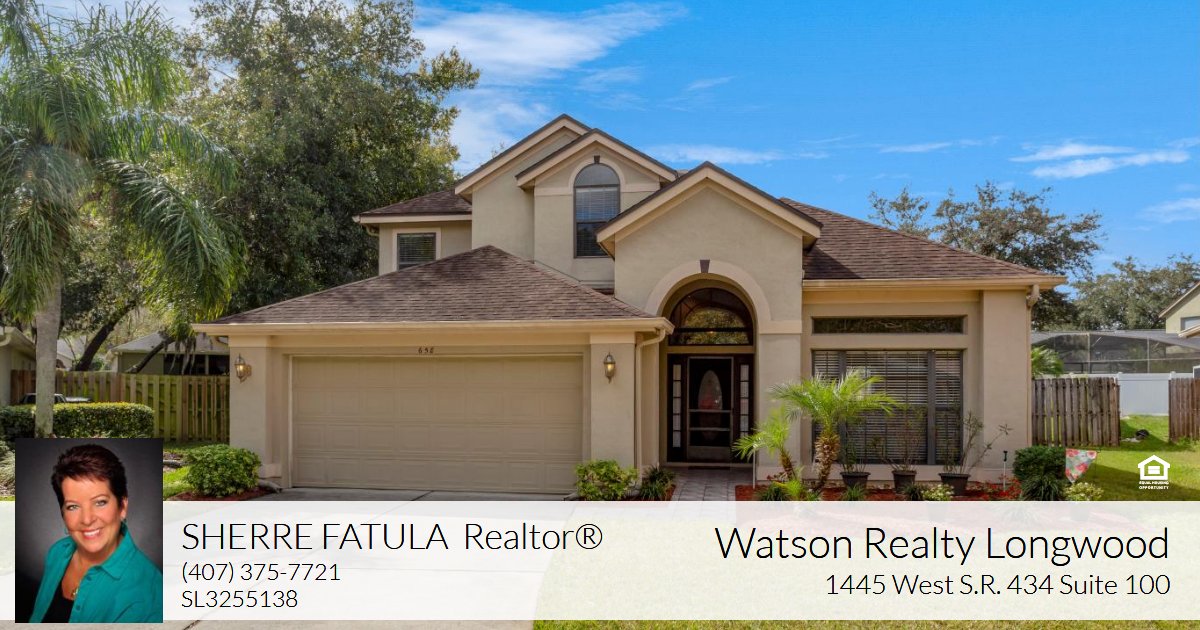 Stunning 4/5 BEDROOM, 2 ½ BATH, executive, POOL HOME located on TREE LINED CUL-DE-SAC in Oviedo’s DESIRABLE KINGSBRIDGE WEST community with SEMINOLE COUNTY A RATED SCHOOLS. Step inside to a fabulous OPEN FLOOR PLAN with NUMEROUS ADDITIONAL FEATURES including ALL NEW INTERIOR PAINT, SOARING VOLUME CEILINGS, UPGRADED TILE FLOORS, TRANSOM WINDOWS, UPGRADED FIXTURES IN MANY ROOMS, CUSTOM ACCENT SHELF IN GREAT ROOM, CUSTOM BANNISTER ON STAIRS and PADDLE FANS THRU-OUT. The OVERSIZE GREAT ROOM with handsome BRICK, WOOD BURNING FIREPLACE and CUSTOM WOOD MANTLE is open to an inviting kitchen with STAINLESS STEEL APPLIANCES, TONS OF CABINETS and COUNTER SPACE plus CLOSET PANTRY. A generous FORMAL DINING ROOM off the kitchen along with the LARGE KITCHEN DINETTE AREA with BAY WINDOWS makes entertaining a breeze. This SPLIT PLAN HOME has the MASTER BEDROOM and EN-SUITE DOWNSTAIRS along with a DEN/5TH BEDROOM, ½ bath and FULL SIZE LAUNDRY ROOM. UPSTAIRS is another FULL BATH and 3 NICE SIZE BEDROOMS. Enjoy Florida living at its best in this HUGE BACK YARD with SCREENED IN POOL BOASTING SOLAR PANELS FOR HEATING, WATER FEATURES, a HOT TUB and BRICK PAVER DECK with EXTENDED SLATE/BRICK PAVED DECK AREA. COMMUNITY AMENITIES include TENNIS COURTS, PLAYGROUND, GAZEBO, PARK, FISHING PIER on Long Lake and best of all A BACK ENTRANCE DIRECTLY TO OVIEDO ON THE PARK. This fabulous home in a GREAT COMMUNITY and EXTREMELY CONVENIENT LOCATION truly has it all!