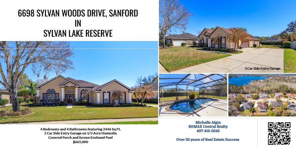 READY TO MOVE IN NOW Impressive 4 Bedroom, 4 Bathroom SINGLE STORY with 3 CAR side entry garage featuring 2446 sq ft plus COVERED PORCH overlooking the screen enclosed POOL on .33 acres! You will love this outdoor entertaining area with built in bar! Soaring vaulted ceiling with SKYLIGHTS in the open family room featuring warm wood burning brick FIREPLACE plus triple pocket sliding doors inviting you out to the porch and pool. Open kitchen is the heart of the home showcasing expansive GRANITE COUNTERS, 42 inch raised panel cabinets with stone backsplash and built in breakfast table. Elegant formal living and dining rooms are perfect for holidays and special occasions. King size primary suite with sitting area features upgraded HIS AND HER MASTER BATHS plus custom walk in closet. Split floorplan design and large secondary bedrooms with private upgraded POOL BATH. Exceptional flexibility in Bedroom 4 with built in MURPHY BED, custom shelving, closet and attached full bathroom making a great office and guest suite. Tile and laminate flooring throughout for easy maintenance. Inside laundry room with plumbing for future sink. 3 car side entry garage with long driveway for extra parking. AC 2024, Roof 2015, Water Heater 2015. Sought after SYLVAN LAKE RESERVE features low HOA dues, community tennis and pickleball court, pavilion and fishing dock. GREAT LOCATION with wonderful shops, restaurants and easy access to I-4 and the Wekiva Parkway.