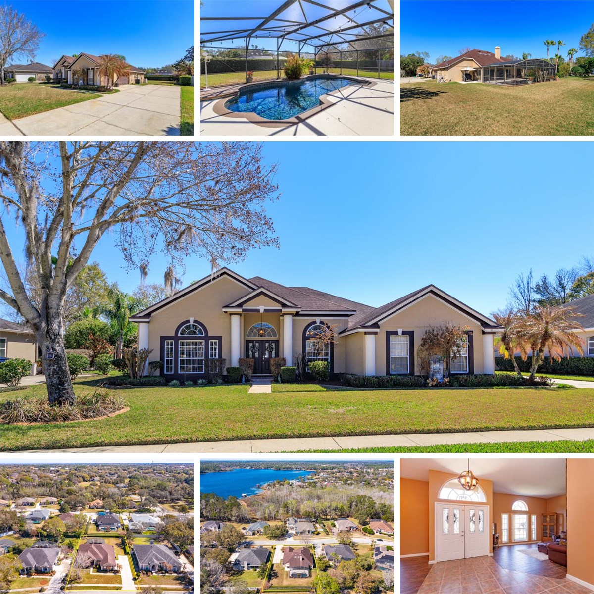 READY TO MOVE IN NOW Impressive 4 Bedroom, 4 Bathroom SINGLE STORY with 3 CAR side entry garage featuring 2446 sq ft plus COVERED PORCH overlooking the screen enclosed POOL on .33 acres! You will love this outdoor entertaining area with built in bar! Soaring vaulted ceiling with SKYLIGHTS in the open family room featuring warm wood burning brick FIREPLACE plus triple pocket sliding doors inviting you out to the porch and pool. Open kitchen is the heart of the home showcasing expansive GRANITE COUNTERS, 42 inch raised panel cabinets with stone backsplash and built in breakfast table. Elegant formal living and dining rooms are perfect for holidays and special occasions. King size primary suite with sitting area features upgraded HIS AND HER MASTER BATHS plus custom walk in closet. Split floorplan design and large secondary bedrooms with private upgraded POOL BATH. Exceptional flexibility in Bedroom 4 with built in MURPHY BED, custom shelving, closet and attached full bathroom making a great office and guest suite. Tile and laminate flooring throughout for easy maintenance. Inside laundry room with plumbing for future sink. 3 car side entry garage with long driveway for extra parking. AC 2024, Roof 2015, Water Heater 2015. Sought after SYLVAN LAKE RESERVE features low HOA dues, community tennis and pickleball court, pavilion and fishing dock. GREAT LOCATION with wonderful shops, restaurants and easy access to I-4 and the Wekiva Parkway.