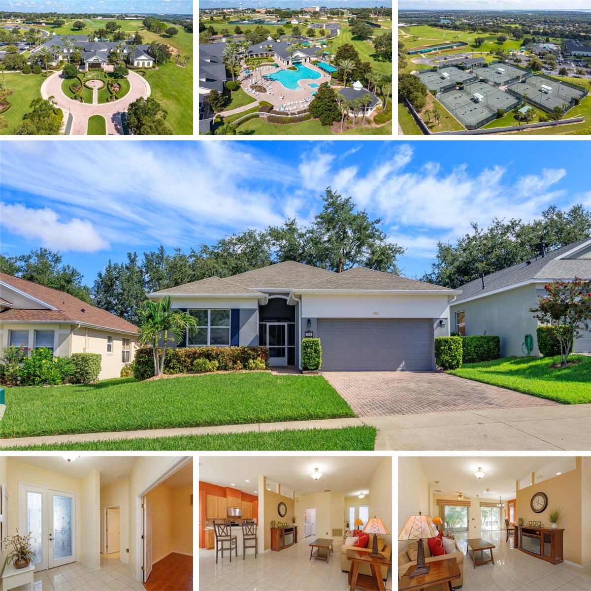 Welcome to Summit Greens! Situated in the lovely hills of Clermont, this 55+ community offers an abundance of amenities, serenity and beauty. You will adjust well to this move in ready home featuring 2 bedrooms, 2 bathrooms, a spacious den, living room, and more! The primary suite offers a large walk-in closet and an en-suite bathroom. Separate from the main bedroom is a guest bedroom and generous den with French doors for privacy. The living room is open and includes an area for sitting. The kitchen features all new appliances and a separate space for eating. The ROOF was replaced in 2021, the HVAC 2020 and EXTERIOR PAINT 2024! Did I mention amenities galore? The impressive clubhouse has an indoor/outdoor pool, many clubs, a fitness facility, tennis courts, and more! Bring your golf cart (or jump in your car) for a short ride to The View at Clermont National (at the top of the hill) to enjoy lunch/dinner, play at the Top Tracer Golf Range, or pick up a game of golf (visit viewclermont for more info). Your HOA fee includes cable w/movie packages, internet, 24-hour guard gate, and more. While you are tucked away in your own piece of paradise, you aren’t far away from many other restaurants, shopping or major highways to get you where you need to be. Also in close vicinity is Advent Health, South Lake Hospital and many other medical facilities to meet your care needs. Make your appointment today!