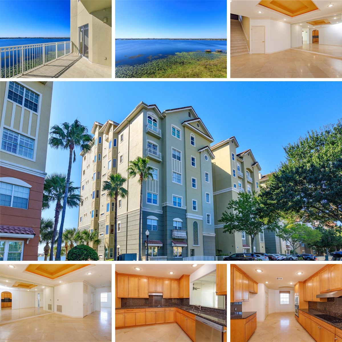 Absolutely stunning and spacious 3 bedroom 2 story Penthouse lakefront condo. This rare Helena floor plan offers luxury and privacy with unmatched water views throughout, there are only 4 condos in the whole community with this floor plan. Resort style living behind the 24 hour manned gates of Vizcaya offering you the convenience of being in the heart of Dr. Phillips close to everything.